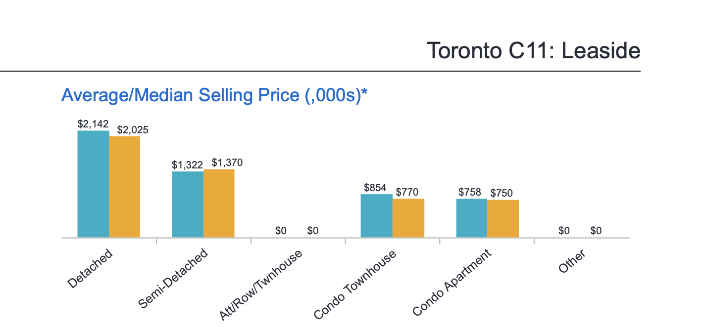 社区内的 Leaside High School 是多伦多地区的一所历史悠久的名校,其在最近一期的安省高中排名是 49/738。学校位于多伦多Eglinton/Bayview Avenue交界处. 是一个典型的中产阶级聚居区,学校于1945年建校,在校学生人数大约在1000人左右,学校以计算机科学和自然科学为重点,并修一些欧洲古典科目,重点培育学生热爱科学的兴趣和热情。学校有法语课程,2006 年,Leaside High School被加拿大生活杂志评为“最佳语言类学校”。